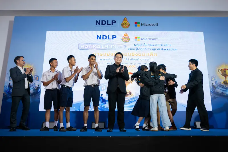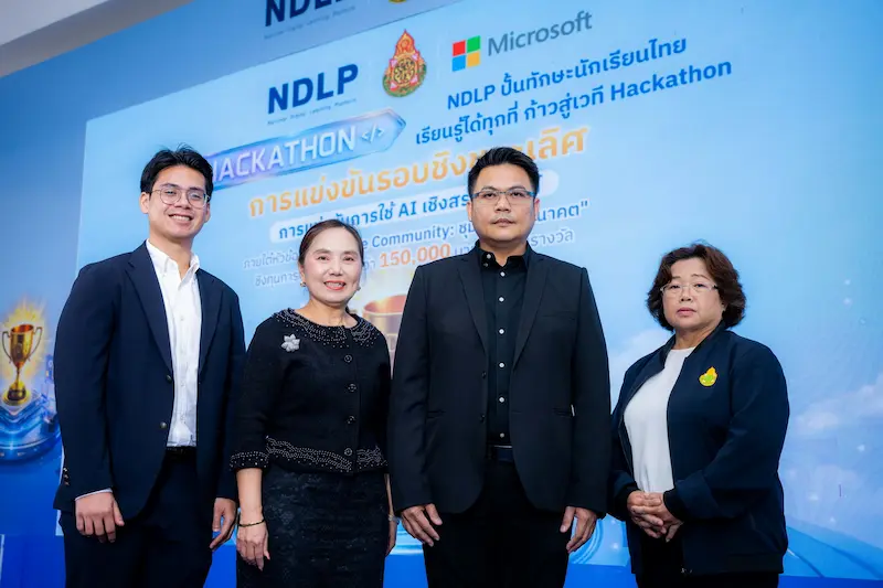 กรุงเทพฯ – 21 เมษายน 2569 – สำนักงานคณะกรรมการการศึกษาขั้นพื้นฐาน (สพฐ.) ผนึกกำลัง บ. ไมโครซอฟท์ (ประเทศไทย) เดินหน้าเชิงรุก ยกระดับระบบการศึกษาไทยเข้าสู่ยุคใหม่ สร้างโอกาสการเรียนรู้ทักษะดิจิทัลและ AI ให้แก่เยาวชน ผ่านแพลตฟอร์มการศึกษาระดับชาติ หรือ National Digital Learning Platform (NDLP) คิกออฟโปรเจ็คท์แรกอย่างเป็นรูปธรรม จัดการแข่งขัน AI Hackathon ภายใต้หัวข้อ “My Future Community – ชุมชนแห่งอนาคต” ชิงทุนการศึกษากว่า 150,000 บาท ซึ่งถือเป็นก้าวแรกของความร่วมมือ โดยมุ่งเปิดโอกาสให้นักเรียนระดับมัธยมศึกษาตอนปลายจาก 1,018 โรงเรียนนำร่อง ทั่วประเทศที่ใช้แพลตฟอร์ม NDLP ได้นำทักษะ AI ระดับโลกมาคิดค้นแนวทางแก้ไขปัญหาจริงในชุมชนของตนเอง และคัดเลือกจนเหลือ 8 ทีมสุดท้ายเข้าสู่รอบชิงชนะเลิศ เพื่อพัฒนาทักษะการคิดวิเคราะห์ การแก้ปัญหาเชิงสร้างสรรค์ใน Hackathon Workshop เรียนรู้ในการสร้าง pitch deck ไอเดียการแก้ไขปัญหาและสร้าง Smart Community รวมถึงได้รับคำแนะนำจากผู้เชี่ยวชาญอย่างใกล้ชิดก่อนถึงวันแข่งขันรอบชิงชนะเลิศ โดย สพฐ.และไมโครซอฟท์ ตั้งเป้าผลักดันให้เกิดการเรียนรู้ดิจิทัลและ AI ทั่วประเทศ ด้วยแผนขยายการเข้าถึงไปยังโรงเรียนในสังกัด สพฐ. ให้ครอบคลุมทั้งหมดกว่า 29,000 โรงเรียนให้ได้ภายในปลายปี 2569 เพื่อให้เยาวชนไทยทุกคน ไม่ว่าจะอยู่ที่ใด มีโอกาสเท่าเทียมกันในการเรียนรู้และสร้างสรรค์ด้วย AI